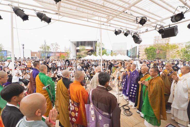 9月26日、大阪・関西万博の会場に建立されたポップアップ寺院「万博寺」。全国から250名以上の僧侶が集い、祈り・法要・声明・音楽・漫才法話・体験ブースなどを展開しました。