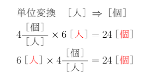 スピードメーターを見てください。(km/h)とあるでしょう。 km=(km/h)h,個=(個/人)人,円=(円/本)本,・・・