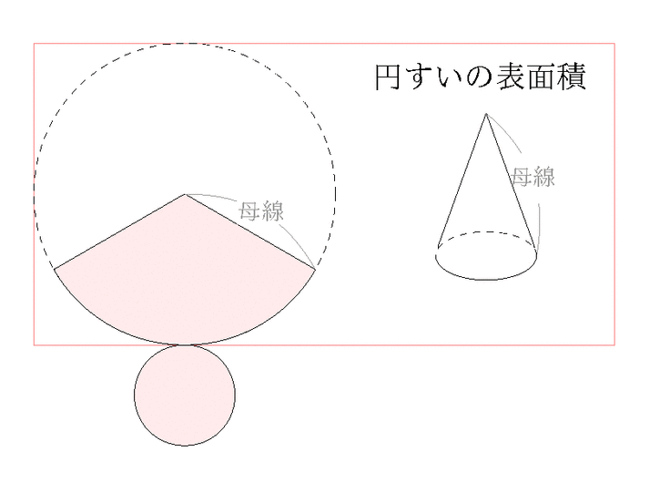 底円の半径と母線が与えられた円すいの側面積を求める方法は中学で次のように教えられています。