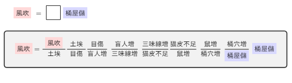 風と桶屋をむすびつけるときにも,「出来る限り単純」な要素に分解していきます。
