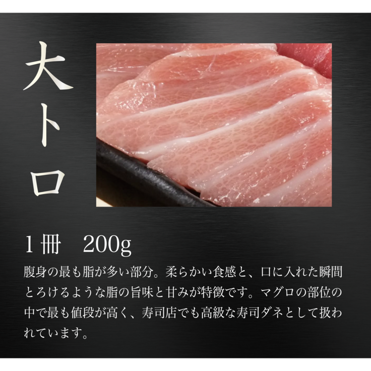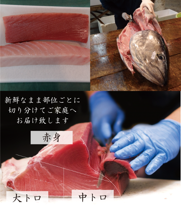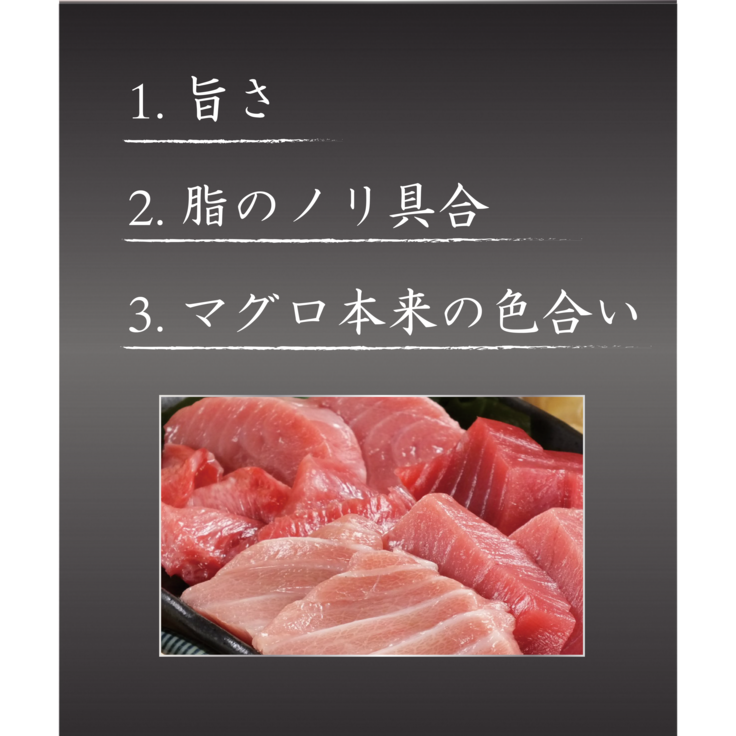 「旨さ」「脂のノリ具合」「まぐろ本来の色合」 そして「造り」「お寿司」でも合うという観点から大間のマグロと同等の評価を得ているほど上質なマグロです。