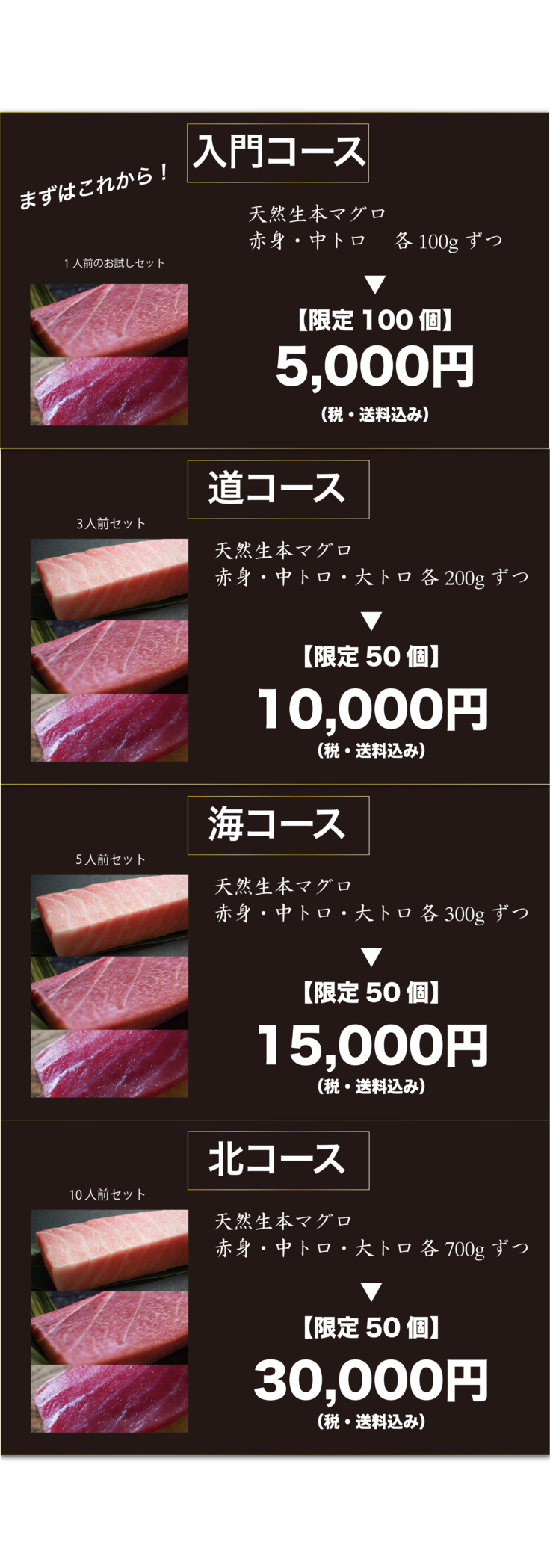 ②道コース (3人前) 赤身・中トロ・大トロ×200g