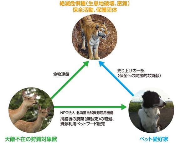 野生のシカの無駄死を減らしたいということだけでなく、ペットフードの販売で得た収益を、国際的な保護が急務のトラ、サイ、ゾウの保護に充当したいということも考えています。かたや増えて害獣で廃棄される動物、かたや漢方薬や象牙などの目的に密猟され絶滅寸前の動物、これらを生かすも殺すも、人間と消費者の意識や行動にかかっています。