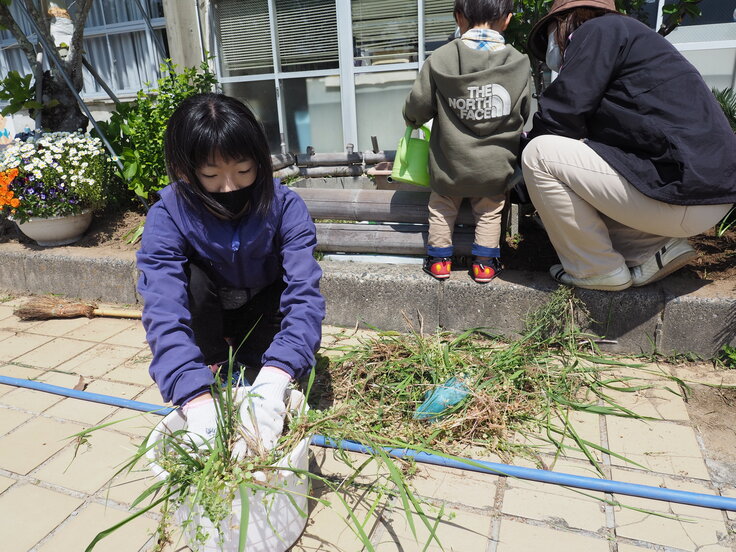 子ども達が安心して学べる環境を維持するために、定期的に校舎や校庭の美化活動を行なっています。
