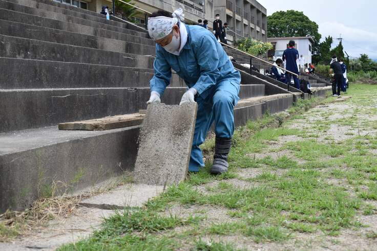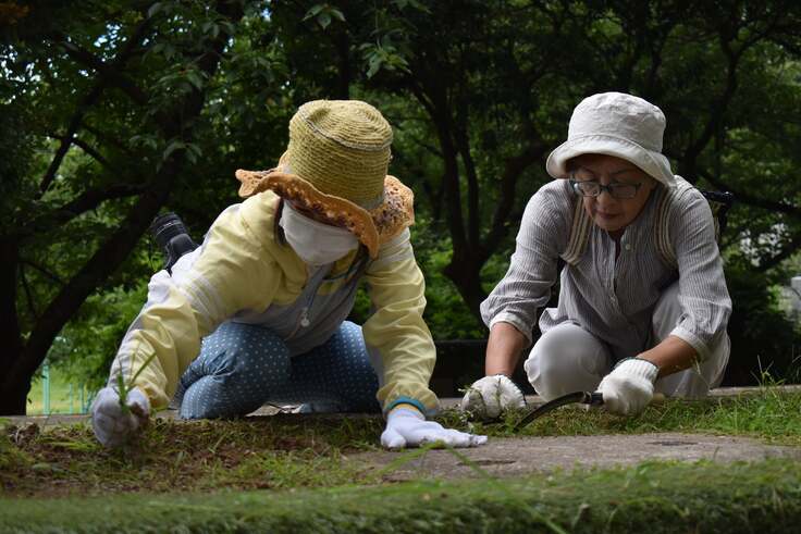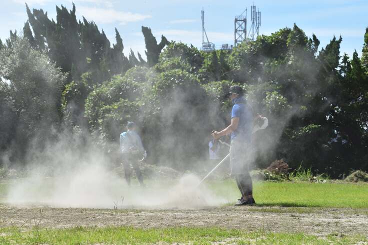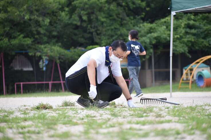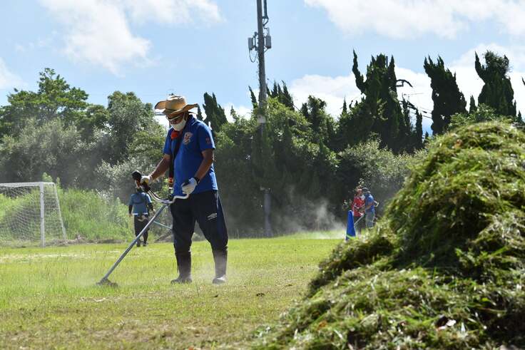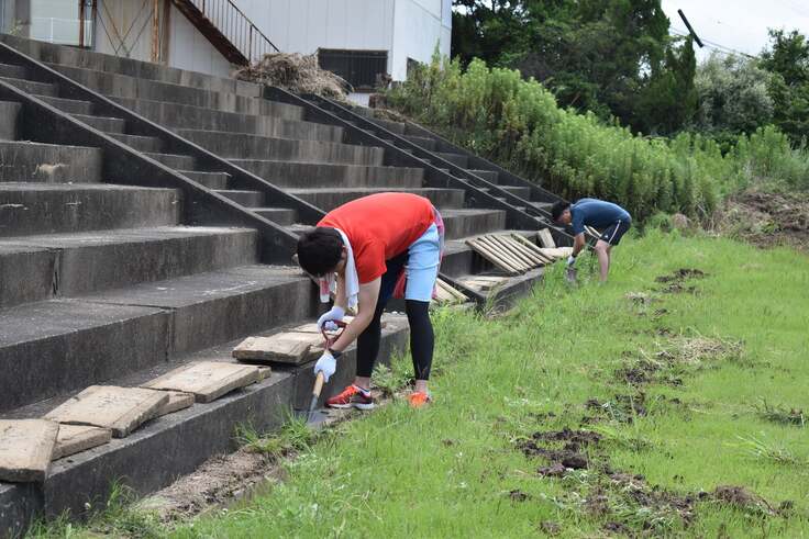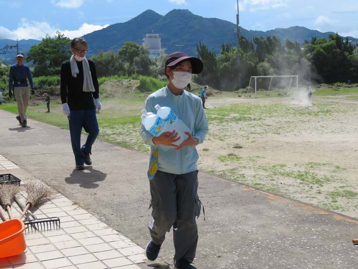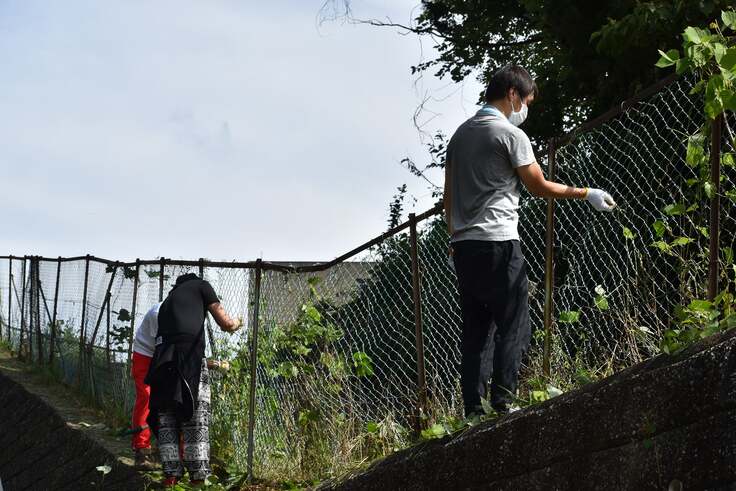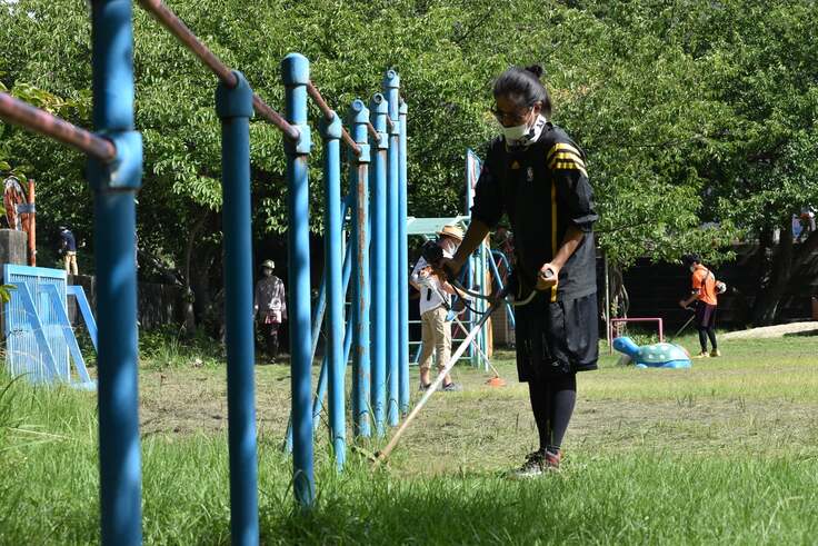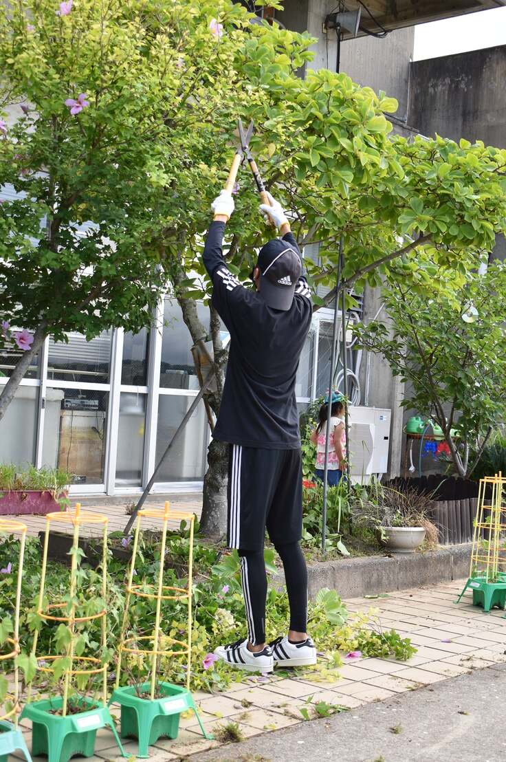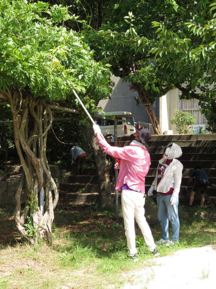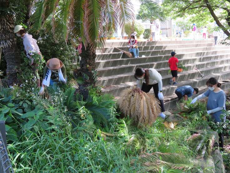 アボジ会が先頭に、青商会、女盟福岡支部、朝青クラブ(福岡朝鮮闘球団)など地域の同胞のみなさんと福岡地区朝鮮学校を支援する会、立花高校校長ちゃんはじめ生徒さんたち、福岡女子大留学生たちなど日本の市民のみなさんとが力を合わせ、鬱蒼と生い茂った樹木は力技で剪定し、生え続ける雑草はさっぱりと刈ってくれ、花壇はきれいに整備してくれました。
