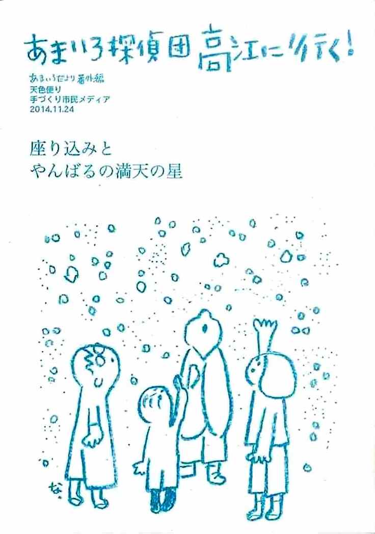 その「碧い琵琶湖」の取り組みの中のひとつ、手作り市民メディアとして、七夏さんは仲間とともに「あまいろだより」というZine(Zine:個人やグループが自由な手法・テーマで手作りした冊子のこと)を「あまいろ探偵団」として活動しながら発行してきました。(この“探偵団”ということばのチョイスも響きも、私はたまらなく好きです。)