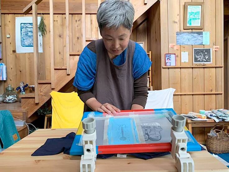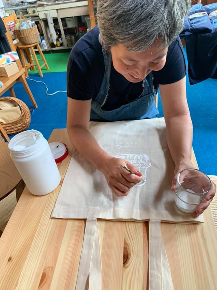 デザインが決まり、製作段階に入った七夏さんたち”劇団石(トル)とゆかいな仲間たち” は、『上手に作るというより、想いを込めて味わいを大事にすることを最優先したい』と考えます。だから、印刷屋さんにお願いすることはせず、手間はかかるけど「ええで」「やろやろ」と、手摺りのシルクスクリーンプリントで作ることになったそうです。