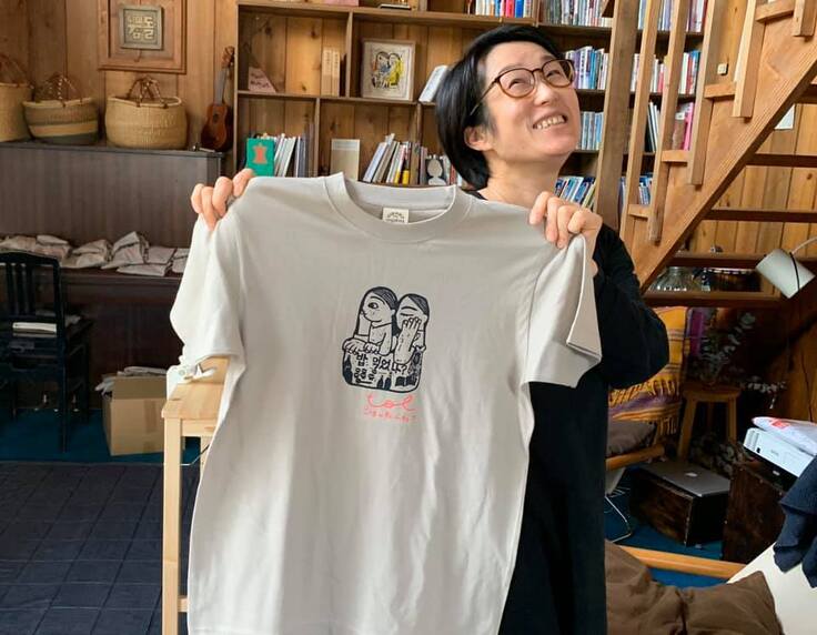 きがんちゃんが毎回、丁寧に手作りされたこだわりの韓国料理のごちそうを振る舞ってくれるのだそうです。リターン(返礼品)になっているTシャツとエコバッグは、七夏さんときむきがんの友情コラボレート作品と言えるでしょう。