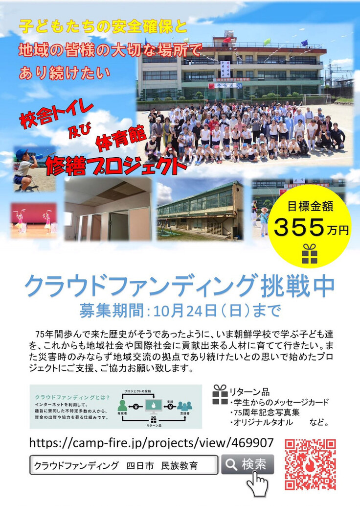 例えばいま、三重県の朝鮮学校ではこんなクラウドファンディングが行われています。