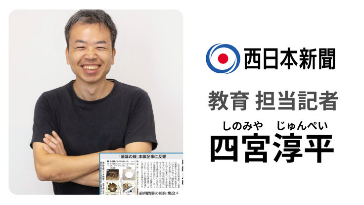 西日本新聞社で教育分野の担当記者をしている四宮淳平(しのみやじゅんぺい)と申します。 2005年に入社し、2016年からは教育分野の取材を増やしていきました。「本当の意味で地域を元気にするために、今のままの学校教育でいいのか」と考えたことが根本にあります。