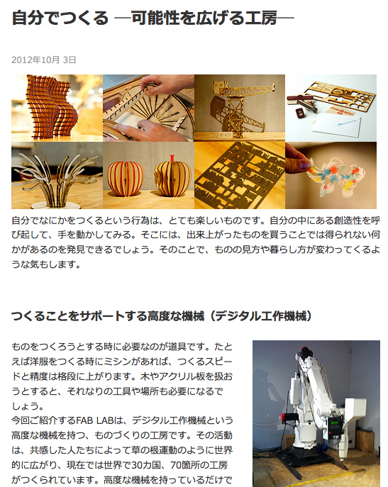 本日、無印良品のくらしの良品研究所のサイトにてFABLABが紹介されております。