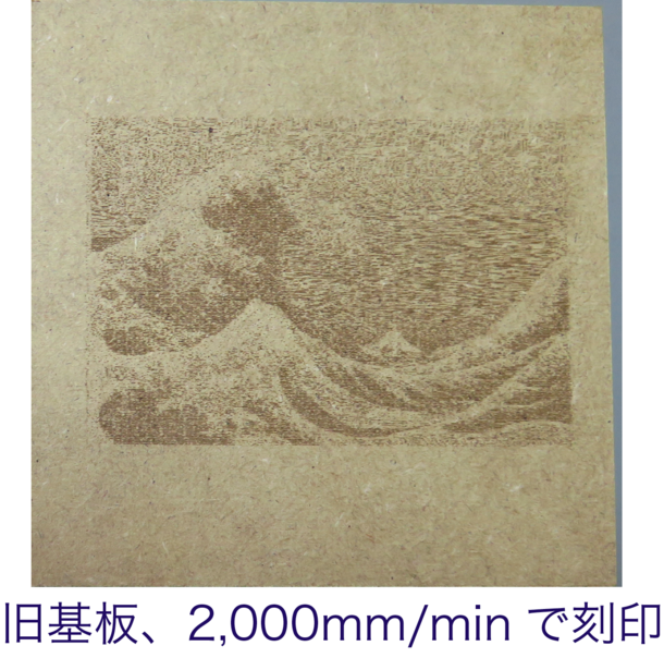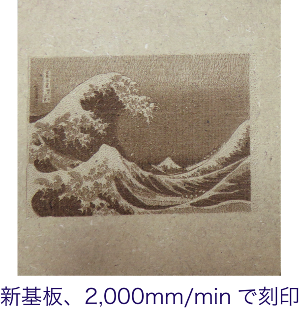 (「2,000mm/minのスピードで新旧基板で刻印」)