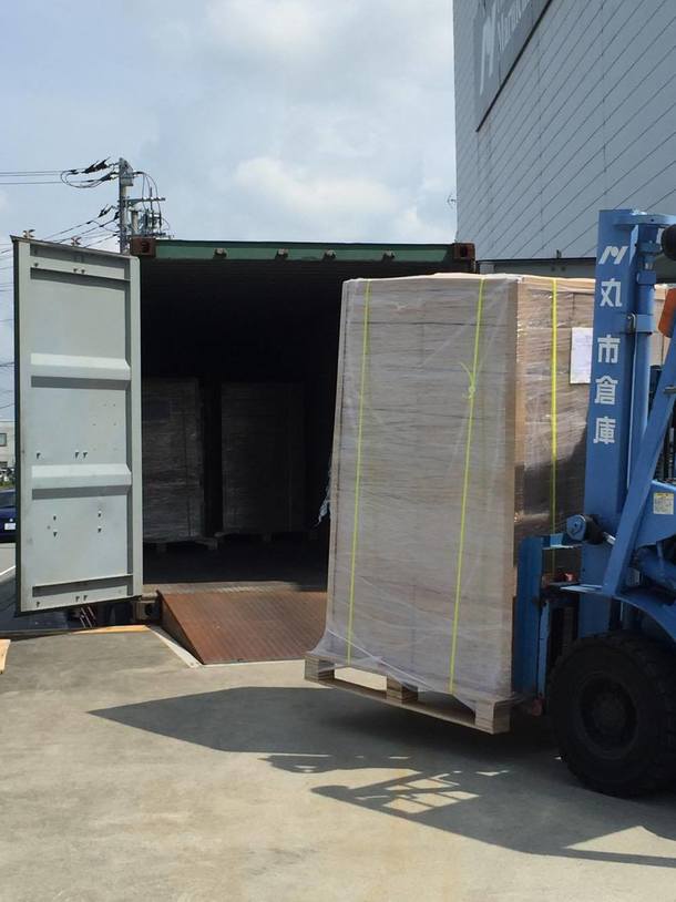 商品発送の進捗状況:コンテナが山梨本社に到着しました!