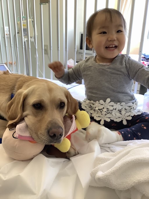 私たちの病院にファシリティドッグのアイビーとハンドラーの大橋さんを迎えて、4年目になります。コロナ禍で家族との面会が制限され、入院中の子どもたちにとってつらい環境の中、アイビーは皆を笑顔にしてくれる存在であり続けました。