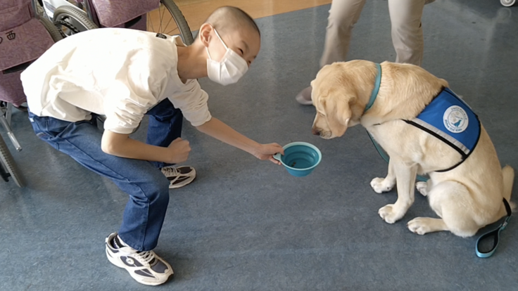 息子本人が「最初の抗がん剤の時が一番きつかった。何でこんなきつい思いして生きなきゃいけないんだろうと思った」と振り返るほど、一番大変なときに、ファシリティドッグのマサ君と出会いました。