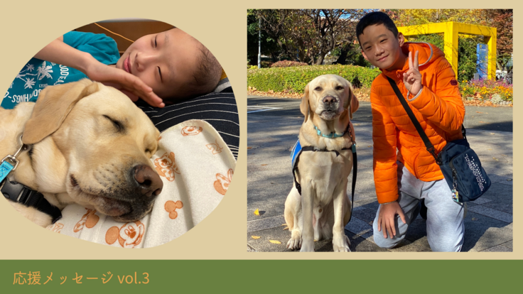 私たち親子が受けた恩恵は、誰にでも与えられるものでありませんでした。息子が助けてもらったように、病気や怪我でつらい思いをする全ての子どもたちに、ファシリティドッグの助けが行き届きますように、ファシリティドッグが全国の各地域で活躍できますように、どうか皆さんの力を貸してください。ファシリティドッグの活動にご協力をお願いします。