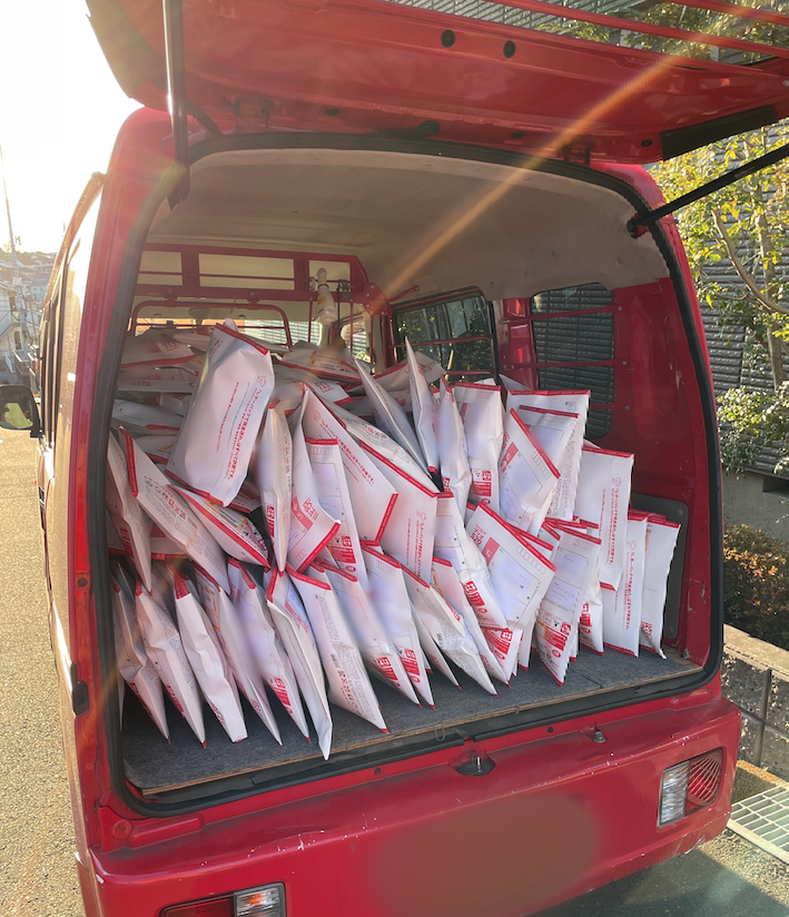 たくさんの荷物で、配送業者の方も驚いたかと思います。改めて、これほど多くの皆さまに応援していただいていることを実感し、嬉しい気持ちになりました。お手元に届くまで今しばらくお待ちください。