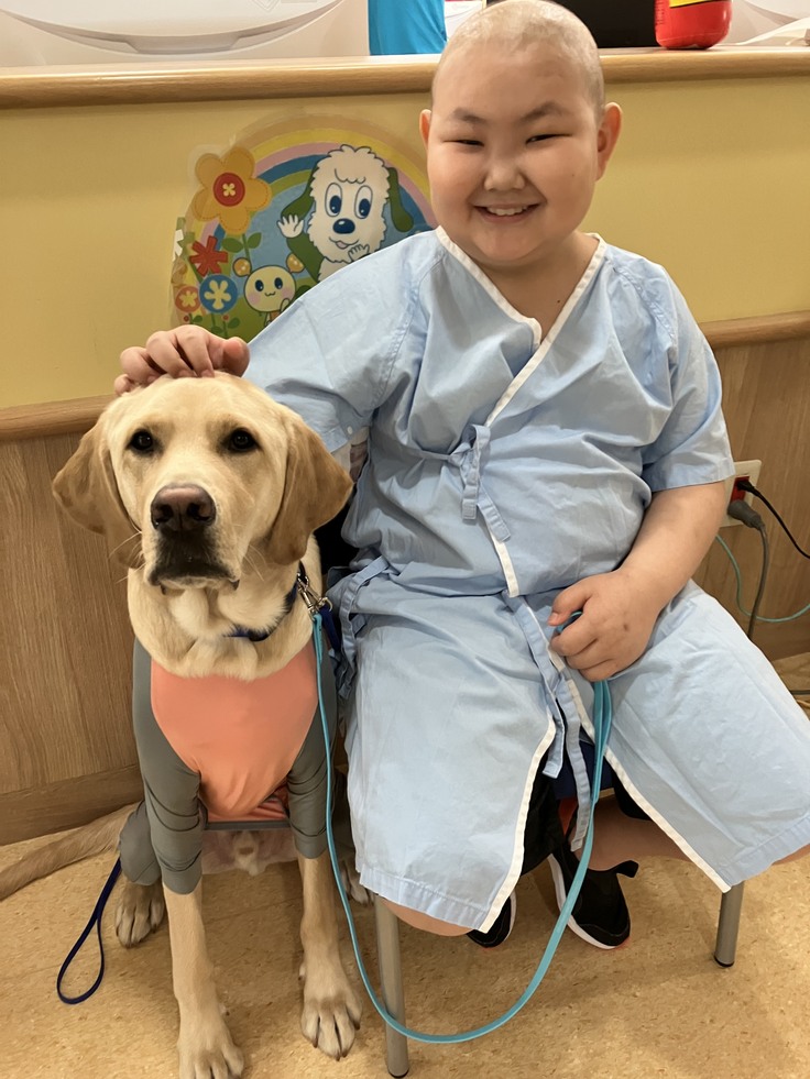 すでに、オリは病棟内でのトレーニング中に多くの子どもたちを訪問し、ふれあいの中で笑顔の時間をつくったり、検査や治療を応援するファシリティドッグの役割を果たしています。