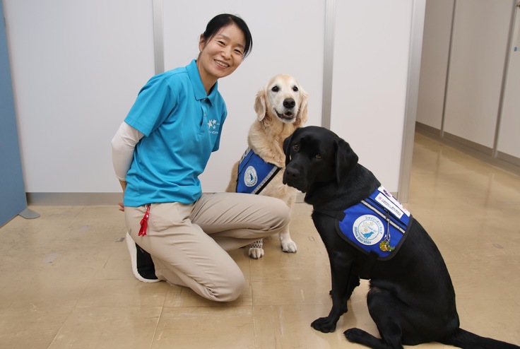 2023年に迎え入れた「トミー」と「ミコ」は、2年余りをかけて専門的なトレーニングを積み重ね、今年9月、病院内で安全に活動するためのスキル習得や、公共の場でのマナー評価など、アシスタンス・ドッグス・インターナショナル(補助犬育成団体の国際的統括組織)の規定に基づいて実施する卒業テスト※3に合格。