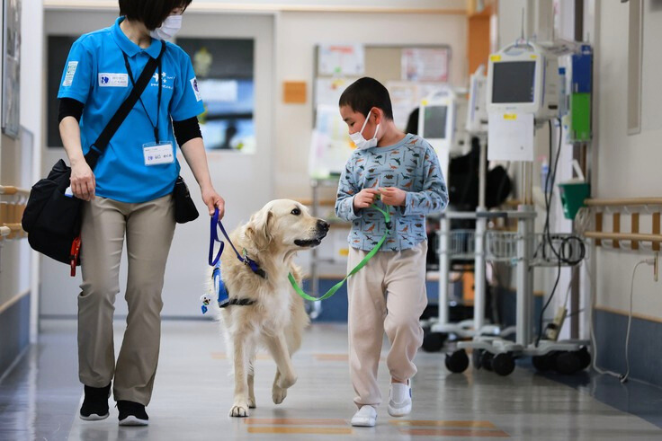 ファシリティドッグの大きな特徴は、平日5日間、同じ病院に勤務し、治療に向き合う子どもたちそれぞれのニーズに合わせた活動を行うこと。ふれあいにとどまらず、痛みを伴う処置や検査、手術室への付き添い、リハビリ支援なども行います。