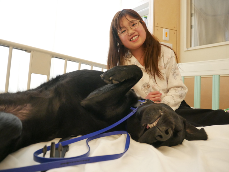 「オリは賢いので、私の意図を汲み取ろうとしてくれます。それだけに、私自身が子どもたちのために笑顔を届けられることを楽しんで、ハッピーな気持ちでいることで、オリもハッピーになれるのかな、と感じています。入院中の子どもたちの心に寄り添う看護をしたいと願ってきましたが、ハンドラーとしてファシリティドッグを通してそれを形にしていきたい、と思っています」