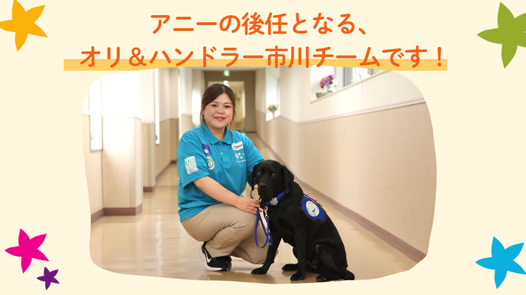 本日11月12日、神奈川県立こども医療センターで活動するホスピタル・ファシリティドッグ®︎(以下、ファシリティドッグ)の引き継ぎ式が行われました。2017年から活動してきた「アニー」とハンドラー森田の後任として、新しく着任したのはファシリティドッグの「オリ」と新ハンドラーの市川です。アニーは来年3月、10歳の誕生日をめどに引退を予定しています。