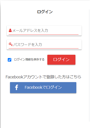 (メールアドレスで登録、Facebookで登録)