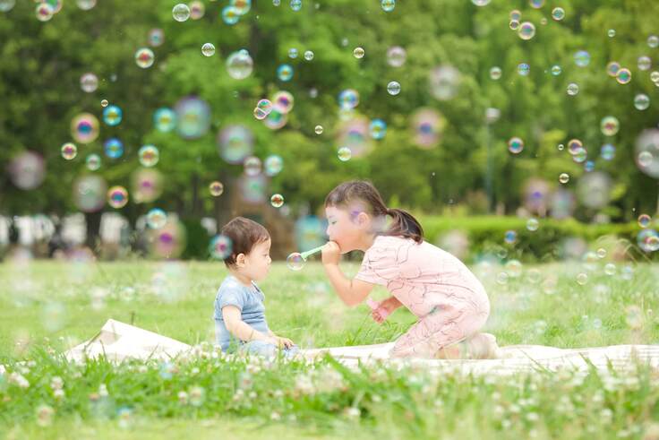 「 おもちゃに飽きたらシャボン玉をしようぜー! 」って。