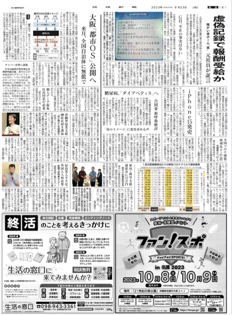 9月23日付琉球新報朝刊6面に「ファンスポin名護2023」の広告を掲載しました!!