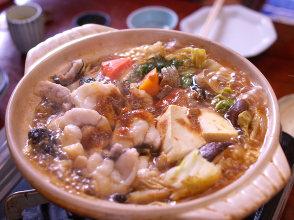 冬の味覚「あんこう」の肝を熱した鍋で溶かして、水を加えずに旬の野菜といっしょに煮込んだ味噌仕立ての鍋料理のことです。あんこう鍋とどこが違うかというと、水を加えないというところ!肝のコク、身から出るダシが凝縮された濃厚スープは究極の味わいです。