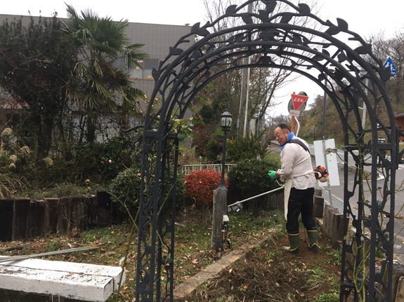 一緒に草刈りとかやっているのは店長と小塩江の後輩たちです。