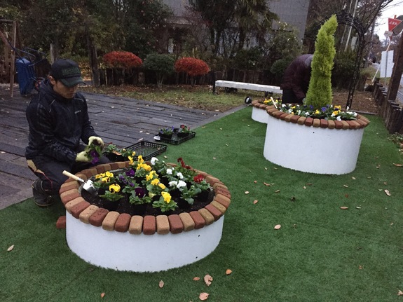 小学校以来のパンジーの植え替えとクリスマスの飾り付!
