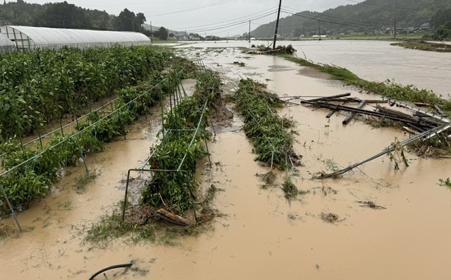 ハウスの倒壊は免れたものの、浸水して沼の様になりました。