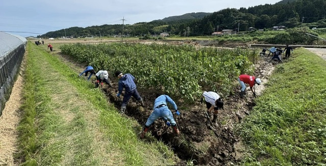 重機ではできない手掘り作業で泥出しをして頂き、上田農園の最大の排水路を復旧して頂きました。