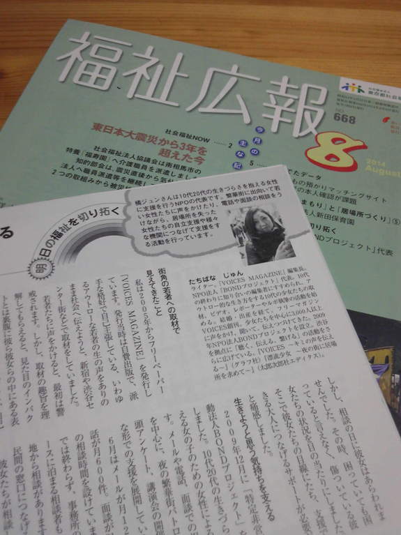 ※東京都社会福祉協議会発行「福祉広報」2014年8月号「明日の福祉を切り拓く」に、BOND代表橘ジュンさんが掲載されています!