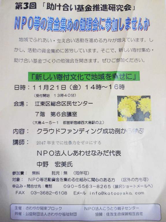 NPO等の資金集めの勉強会~新しい寄付文化で地域を幸せに!~