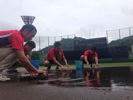 先日、試合開催に向け、グラウンドの水抜き作業開始!