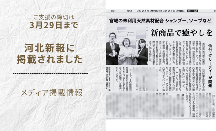 本日の河北新報朝刊経済面で、このプロジェクトについて掲載いただきました。