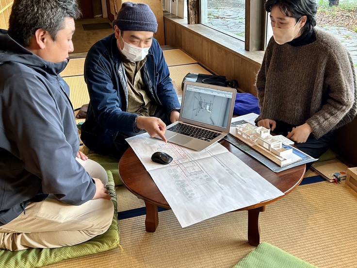 宿の設計&施工チームが五城目に集合し、改修打ち合わせを行いました!