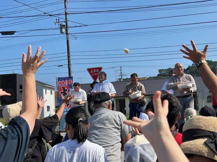 本番が終わると屋台を巡ったり、大槌恒例の餅まきに参加したりと「よ市」を楽しみました。