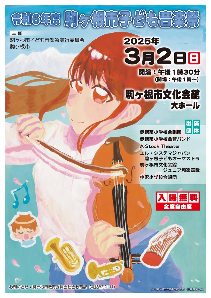 駒ヶ根子どもオーケストラの子どもたちは、3月2日(日)に駒ヶ根市子ども音楽祭に市内の団体の一つとして参加します。お近くの方はぜひお越しください。