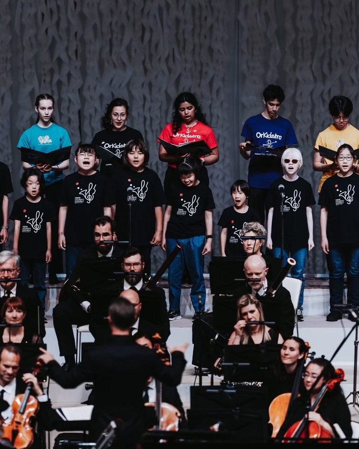東京子どもアンサンブルは、カナダ国立芸術センター管弦楽団、オスカー・ピーターソン・センテニアル・カルテット、そして、カナダのエル・システマ団体(首都オタワのOrKidstra、ニューブランズウィック州のSistema New Brunswick)の青少年メンバーとの共演のステージで、本年が生誕 100 周年となるカナダ出身の世界的音楽家オスカー・ピーターソンの歴史的名曲”Hymn to Freedom(自由への讃歌)”を歌いました。
