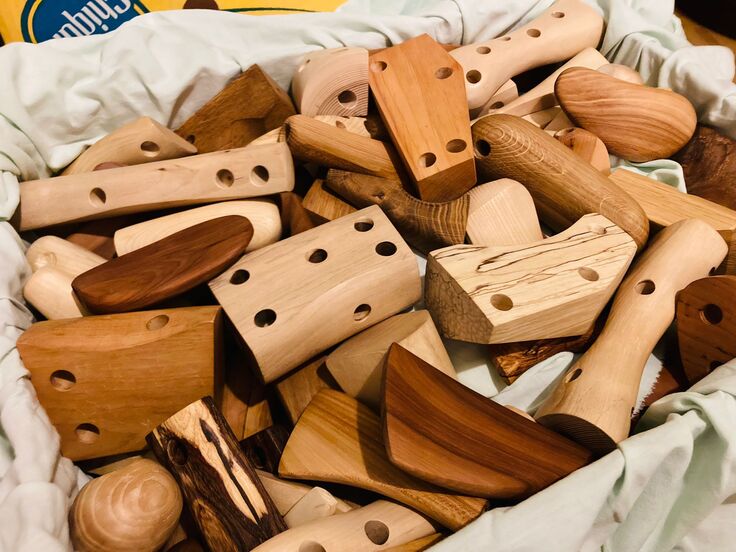早速箱を開けると、惚れ惚れするような美しい木のかけらたちが、いまかいまかと遊んでもらうのを待っていました。さすが家具職人さんは仕上げや木の見せ方がプロフェッショナルです!