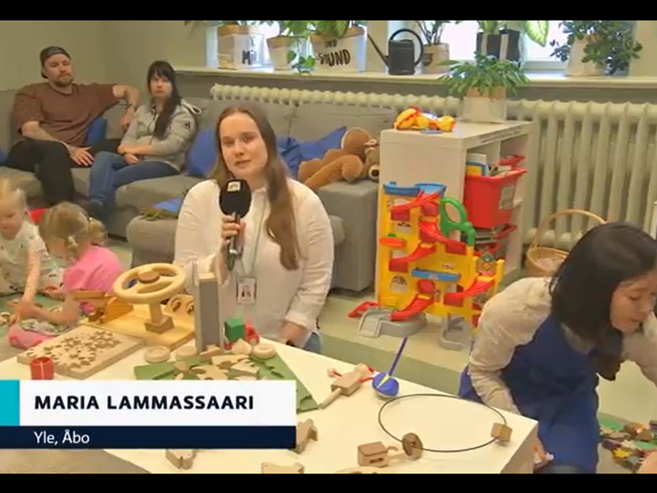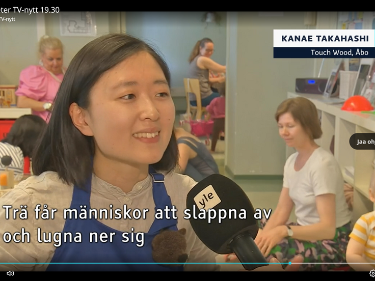 先月末には、フィンランド国営放送の夕方のニュース(スウェーデン語パート)で私たちTouch Woodの取り組みについて紹介いただく機会がありました。Yle Nyheter TV-nytt | Yle Nyheter TV-nytt 19.30 | Yle Areena (▷16:05-18:15の間) ちょうどマンネルヘイム児童福祉協会トゥルク支部の「Marakatti」という子育て支援の場所で、木のおもちゃのイベントを開催しているときに取材に来ていただくことができました。取材を取り付けてくれたTouch Woodの佳奈子さんの声がちょうどガラガラになり、急遽インタビューに答える体験をすることになり、とっても緊張しました!つたない答えだったものの、大事な部分をちゃんと切り取っていただけて、さすがプロフェッショナルなスタッフのみなさんです。