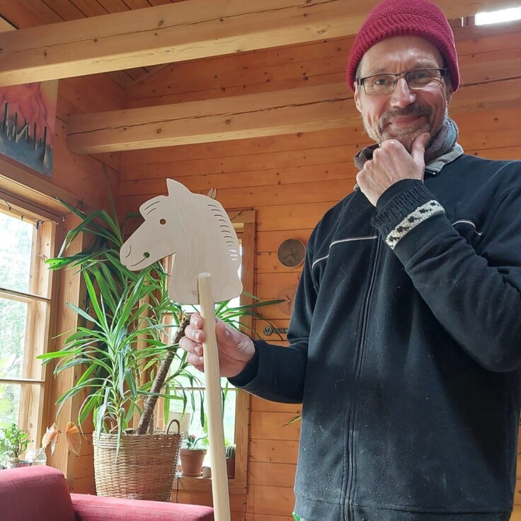 いつもこのプロジェクトの新着情報をご愛読いただいているみなさんは、もうお分かりかもしれませんが、私がお伝えしたいフィンランドの遊びは「Keppihevonen(ケッピヘヴォネン)」です🐴 今年3月にGEPETTOという名前でミニチュアドールハウスを作っている友人ご夫婦の家を訪ねたときに、お家に飾ってある手作りのお馬さんについて質問してみて初めてこの遊びについて知ることができました。乗馬体験がいますぐには難しくても、この手作りのお馬さんがあれば想像力を働かせて乗馬をしているように遊ぶことができます。