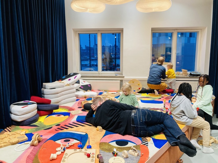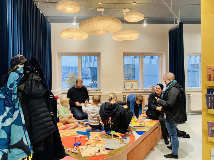 フィンランドの父の日直前の土曜日の今日は、ヘルシンキの港エリアにあるヤトカサーリ児童図書館で木のおもちゃのイベントを行いました。こちらの図書館は、まだクラウドファンディングのおもちゃが届く前の今年4月末に、私の手元にあったおもちゃで小さなイベントを開催させていただいたご縁で、ついにクラウドファンディングのおもちゃを持って凱旋イベントを実現することができました。私たちのプロジェクトに共感し、応援してくださっている図書館の司書のみなさんに心から感謝です。スーツケースからおもちゃを取り出しているうちから、子どもたちは木のおもちゃに興味を持って早速遊びに来てくれました。