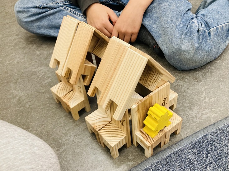 5月にこちらの子どもコーナーでイベントをしたときに、自分自身も木のおもちゃを気に入って、とっても熱心に楽しい遊び場にしてくださった司書さんが、今回も私たちのイベントを担当してくださりました。私はまた再会できたのが嬉しかったですし、司書さんが昨日のことのように木のおもちゃの遊び方を覚えてくださっていて感動しました。子どもたちを巻き込む力の持ち主で、きっとおもちゃ美術館で働いていてもおかしくないほどの方だと思います。色んな言語を話すのもお上手なので、私たちのことについてたくさん説明してくださり、本当に助かりました。