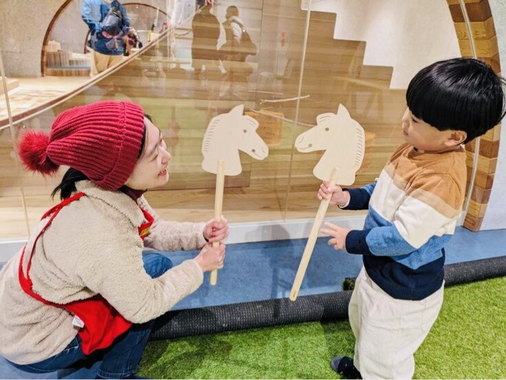 日本の子どもたちにとってなかなか見慣れない遊びなので、最初は必ず「???」というリアクションをいただいたのですが、一度手に取って遊んでみると魔女の箒のように不思議な力が宿って、これが本当のお馬さんだったらと想像力が湧いてくる、シンプルだけど後から味わいが出てくる不思議な遊びです。時代劇が好きな大人の方からはよく、「子どもたちがこんなふうに馬を想像して遊びを時代劇のなかで見たことがあるよ」と教えてもらうので、日本でも元々あった遊びのひとつなのかもしれないですね。
