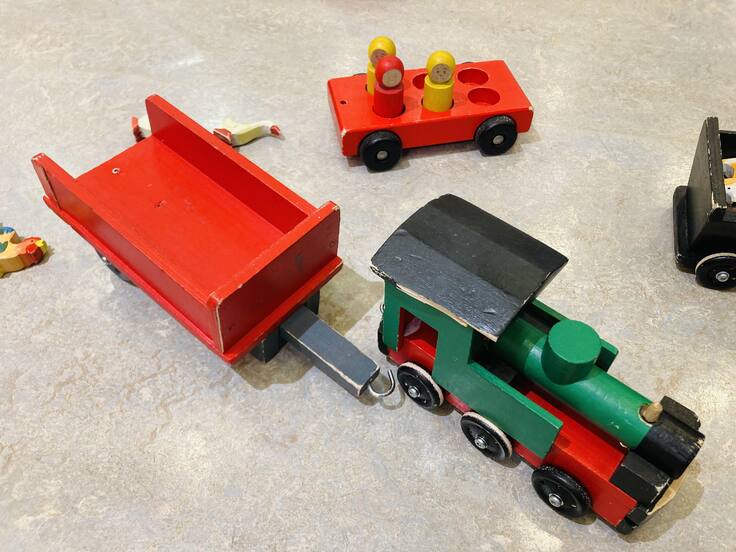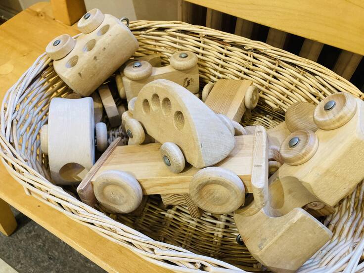 親しみのあるおもちゃだなと思い手に取ってみると、ユシラ社のユッカトイの車や人形のおもちゃ、昨年工房を訪問したTuffan Puulelutの機関車のおもちゃがありました。改めてこれらのおもちゃは、フィンランドの子どもたちの遊びを支えてきたんだなあと思いました。