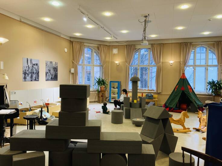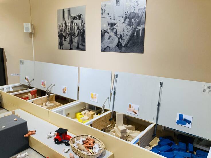 こちらの幼稚園博物館には、「フレーベルボックス」という巨大サイズのブロックがあります。フィンランド文化基金の支援のもと、幼稚園博物館とフィンランドのアーティストAlexander Reichsteinが共同でデザインしたことで生まれたそうです。先月、遊びの博物館Museo LeikkiのBLOCK PARTYというイベントに参加させていただいたときに隣の部屋に出張して来ていたので、再会できた気分で嬉しかったです。私自身も遊んでみて大人でも大きいブロックは積み上げてみたくなるし、とても楽しいなあと思いました。